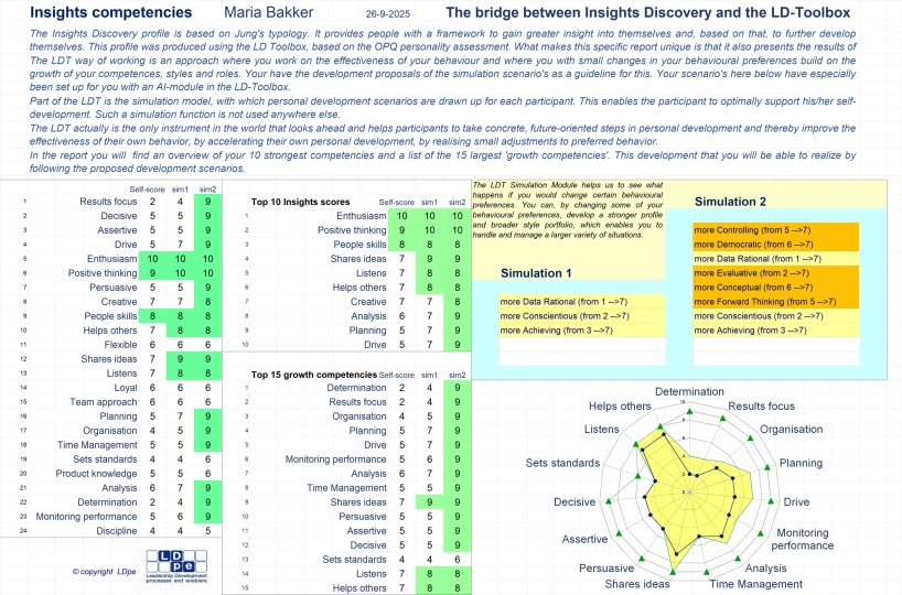Och även här byggde LD-Toolboxen en bro till denna assessment modell samtidigt som den analyserar framtidsperspektivet med hjälp av simuleringsscenarierna.